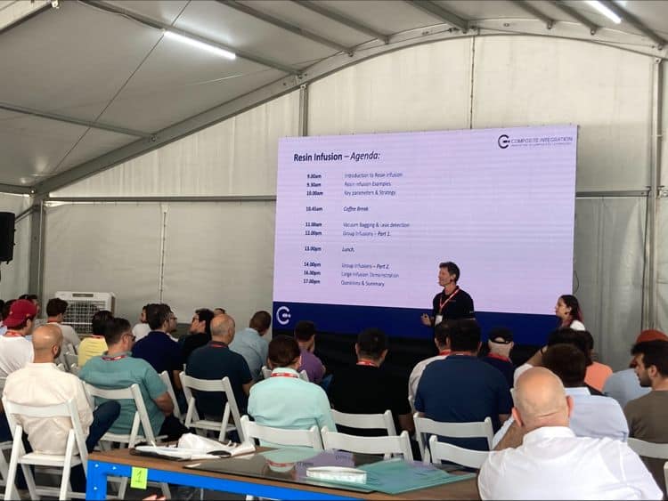 “the event was incredibly well received. In the 3 days we were able to cover a huge amount. The enthusiastic delegates learnt and experienced key stages of composite tool building, in groups they assembled and infused demonstrator laminates and we were able to infuse a small boat hull live. Delegates were able to see our Ciject® injection machine, CiDAQ data loggers and IMPS pressure sensors in action. So all in all they had a very informed and energetic experience.”