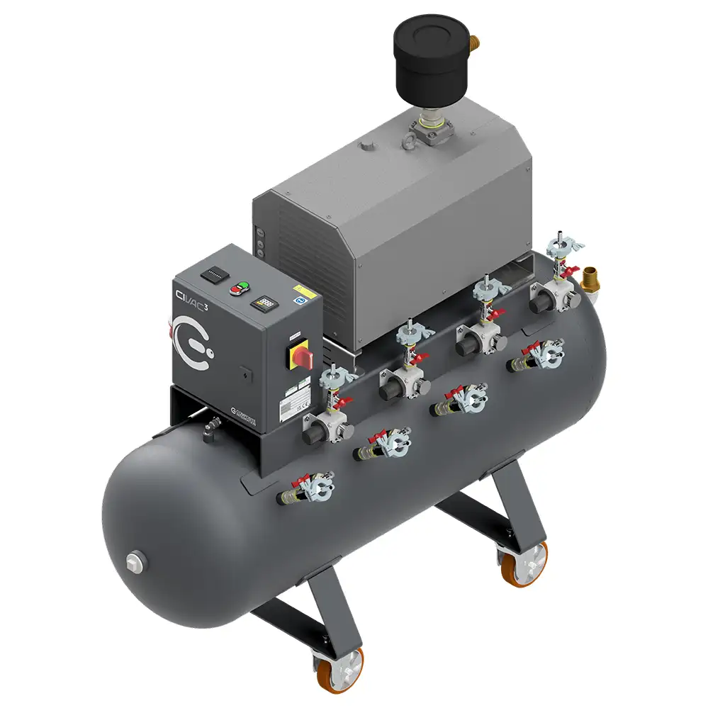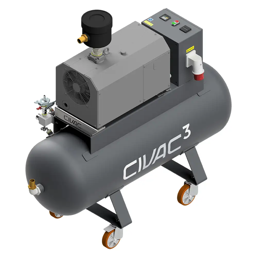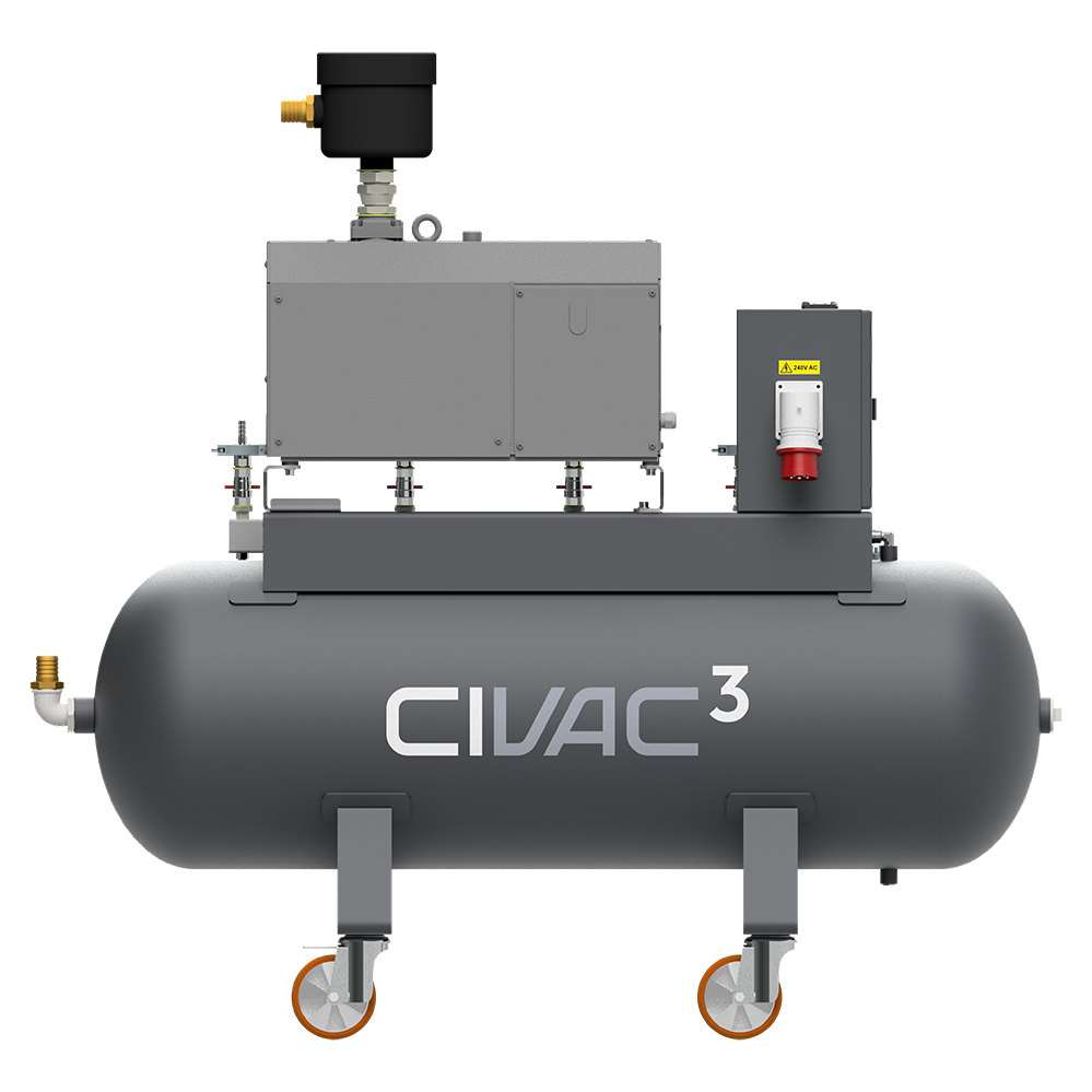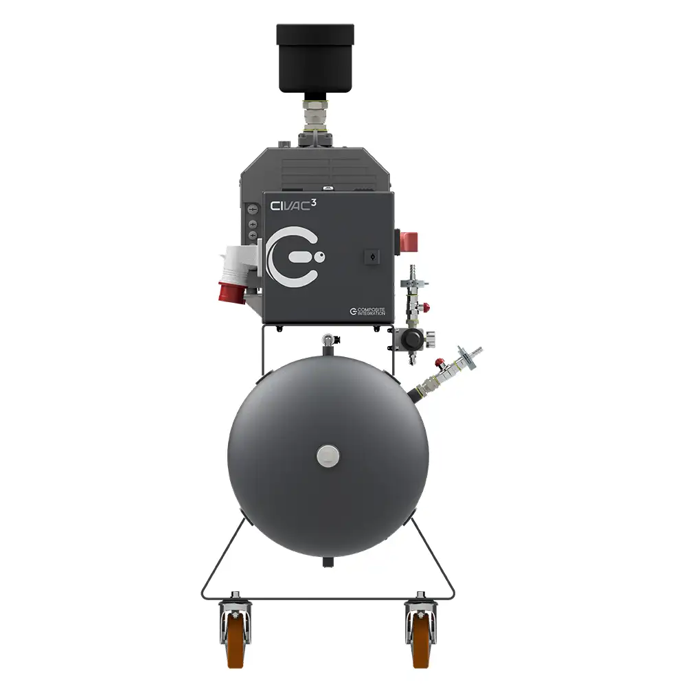 CIVAC 3 is a simple, robust and efficient dry-running vacuum system, ideally suited for medium to large RTM / VRTM, and Direct InfusionTM type applications. Available frame mounted, or integrated with a reservoir, offering ultimate vacuum levels of up to ≤0.1 mbar.